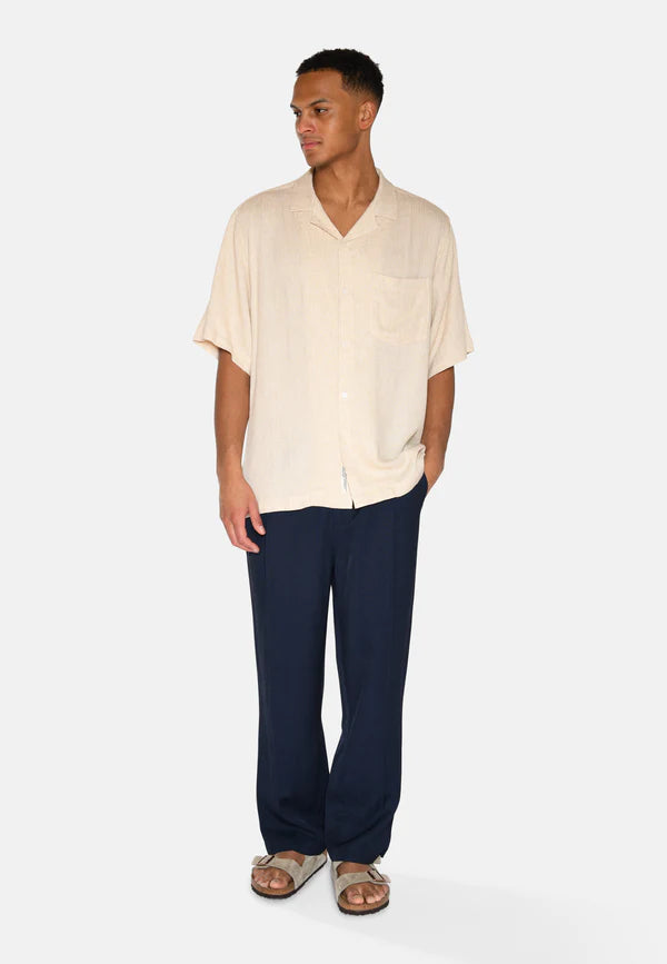 This short-sleeved shirt is made from a blend of viscose and linen, which gives the shirt a perfect balance between lightness, breathability and structure. The combination of these materials makes the shirt both soft and comfortable to wear, while it has a natural texture that highlights its relaxed and stylish look.The shirt has a classic collar and full-length button closure, giving it a timeless and versatile design, while the single chest pocket adds a practical and discreet element. The linen material gives the shirt a light and airy look, while the viscose adds a softness and a nice fall, making the shirt ideal for both casual and more dressed-up looks.With its relaxed fit, this shirt is perfect for warm days when you still want to maintain a stylish look. It can be easily styled with shorts, jeans or chinos for an elegant and comfortable outfit that works both for everyday use and for slightly more formal occasions.